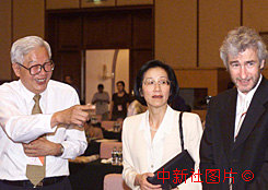 罗豪才与袁明和诺伦交谈(图文) 2000年6月21日 18:03 ![]() 全国政协副主席、“21世纪论坛”2000年会议组委会副主席罗豪才(左)16日在会议休息时,与北京大学国际关系研究所所长袁明(中)、英国剑桥大学“中国管理办公室”高级经济学家诺伦在一起谈笑风生。中新社记者:李刚