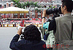 来自世界各地的约九百名记者,对台湾地区新领导人二十日出场相当关注。中新社记者:王顺 摄