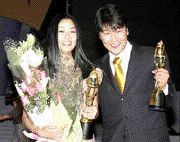 图文:宋康昊高素荣分获韩国大钟奖男女主角 2001年4月26日 10:41 ![]() 中新网汉城4月26日消息:韩国大钟奖颁奖仪式于昨日下午在汉城世宗文化会馆大礼堂举行,影片《共同警备区JSA》主人公宋康昊获得最佳男主角奖,最佳女主角奖则是《一天》主角高素荣。 今年最佳影片奖归属朴赞郁导演的《共同警备区JSA》;韩志升执导的影片《一天》则囊括了导演奖、最佳女主角奖、审议委员会特别奖、女配角奖等主要奖项。而近掀起韩国影坛飓风的影片《朋友》却与奖项失之交臂。 宋康昊表示,“一半的荣誉应该属于一同出演的李柄宪”,并跑到观众席与李炳宪热烈拥抱。 高素荣虽被誉为忠武路黑马,但是一直笼罩在沉银河和全杜妍的阴影之下。此次缍凭借《一天》登上领奖台。 通过网民评选的男女印象奖获得者分别为李炳宪和沉银河。 据韩国中央日报报道,《共同警备区JSA》(作品奖、导演奖、音响奖、美术奖)、杨润浩(音译)导演的《Libera ME》(摄像奖、照明奖、剪辑奖、特殊效果奖)以及《一天》分别囊括了4大奖项。 |