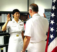 图文:华人翁正欣将出任美太平洋司令部发言人 2001年6月4日 08:23 ![]() 中新网香港6月4日消息:幼年时自台湾移民美国的现役美国海军少校翁正欣,7月起将出任太平洋美军司令部的新闻官。 据“中央社”报道,翁正欣生于云林水林乡,7岁随父母移民美国。她说,她很高兴到夏威夷任职,因为她的亲戚都住在台湾,而夏威夷离台湾比较近。她十年前从美国海军官校毕业,今天晋升少校,同时领取华府天主教大学的政治学硕士学位。 翁正欣目前在五角大厦任职,职务是海军新闻官。 她的父亲翁义雄说,正欣选择从军,是因为他和太太以前在假日常到海军官校所在地马里兰州安纳波利斯,太太羡慕官校女生穿着白色制服非常帅气的样子,正欣便决定效法,进入海官就读。翁义雄目前在马里兰州政府卫生局任职。 翁正欣说,当时从台湾移民美国很不容易,她自认能在美国成长非常幸运,而选择从军部份是想要报效这个国家。她的丈夫约翰·桑默是她在官校的学长。 |