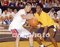 中新社香港八月十日电 题:科比在篮球场上给难倒了 中新社记者 卢峰 已协助洛杉矶湖人两夺NBA总冠军的科比•布莱恩特今天在香港的篮球场上给难倒了!今天是科比蝉联冠军后首次亮相球场,与香港青少年同场竞技,科比盘球灌篮的技术仍然令球迷看得拍红手掌,但三次三分远射都擦框而过,引来球迷阵阵的嘘声。 科比在回答球迷的发问时也不顺利。当他滔滔不绝地大谈自己在球场上的心路历程时,冷不防被一名男孩问起科比的脚有多长。科比迟疑了一会儿,摇摇头微笑地说:“虽然以前量度过,但我忘记了。” 在一千六百名球迷的热情高呼下,科比今天在香港度过了一个难忘的下午。身穿黄色战衣的科比可能因疏于“战场”的关系,与男子组比赛时打得并不轻松。香港的小伙子也没有错过在偶像面前表演,左右盘球力压科比,幸好科比靠出色的盘球及灌篮技术,最终以十一比九险胜对手,挽回了面子。 科比今天还指导少女队投球练习方法,由球框下每投入五球就拉远距离再作投球练习,直至完成每组连入二十球的成绩。科比说:“这个练习是要自己掌握进球的力量、速度,知道在不同位置应该怎样起手投球,如何伸展手臂,我曾经为此练习了三小时。” 他提示球员,在比赛及练习中,心里只可以想自己、球及球框,每个球都要全神贯注地投,不要理会球迷如何起哄,这才能发挥出应有的水平。科比还指导观众模仿湖人队“连击拍掌”,鼓励香港年轻球员努力作赛。 五岁开始打篮球的科比说,十二岁开始就相信自己有能力进军NBA,不过还是要靠自己的努力来达成目标,他希望今年能够创下三夺NBA总冠军的佳绩。他说:“自己热爱篮球运动,无论心情好坏,只要能够打篮球,所有烦忧都可以忘记得一干二净。” 科比闲时最爱追求“速度”,他说,会到海滩操控水上电单车,或者驾驶意大利跑车,但也会观看电影来减压,而蝙蝠侠是他最爱的卡通人物。如果将来退出篮球比赛,他将会从事商业工作,好好地做一名生意人。 香港球迷今天还为科比预祝生日,高唱生日歌,大会也送上帆船纪念座,让科比感动地连续五次以“Thank you”答谢香港球迷的热情款待。科比明天将继续中国之旅的行程,在北京八达岭长城表演灌篮技术。 (完) |