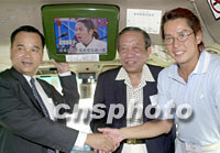 组图:谭咏麟公司为小巴乘客提供节目 2001年08月16日 09:25 ![]() 东方魅力主席谭咏麟、东方魅力执行董事长黄勤道(左)、绿色专线小巴总商会主席邱戊秀(右二)、冠荣董事长马亚木(左二)在记者会上介绍有关事宜。中新社传真 邓庆乐 摄 ![]() 东方魅力集团15日在香港宣布与绿色专线小巴总商会及冠荣车行有限公司携手合作,为公共专线小巴乘客提供精彩娱乐资讯及广告。东方魅力主席谭咏麟(右)、绿色专线小巴总商会主席邱戊秀(右)、冠荣董事长马亚木为祝合作成功握手。中新社传真 邓庆乐 摄