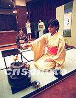 图:日本古典文化艺术团表演茶道 2001年09月11日 15:56 ![]() 日本古典文化艺术访华团日前在北京政协为中国观众进行茶道表演,以展示日本独特的古典文化艺术。中新社记者 史利 摄 |