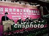 组图:首届世界华文传媒论坛在南京开幕 2001年09月16日 14:42 ![]() 首届世界华文传媒论坛十六日在南京开幕,中国国务院侨务办公室副主任兼中国新闻社社长刘泽彭主持会议。中新社记者 王瑶 摄 ![]() 首届世界华文传媒论坛十六日在南京开幕,中国新闻社总编辑郭招金在开幕式上作《全球化浪潮中的海外传媒的定位与角色》的发言。中新社记者 王瑶 摄
