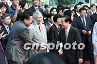 组图:钱其琛看望出席世界华文传媒论坛的代表 2001年09月16日 17:21 ![]() 国务院副总理钱其琛十六日亲赴南京紫金山下的国际会议中心,看望出席首届世界华文传媒论坛的代表,与香港代表凤凰卫视主席刘长乐等亲切握手。中新社记者 王瑶 摄 ![]() 国务院副总理钱其琛十六日亲赴南京紫金山下的国际会议中心,看望出席首届世界华文传媒论坛的代表,与《星洲日报》董事萧依剑、《国际日报》董事长熊德龙(左一)等代表亲切握手。中新社记者 王瑶 摄