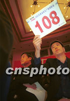 图文:央视广告招标尘埃落定 娃哈哈集团当状元 2001年11月09日 09:09 ![]() “中央电视台2002年黄金段位广告招标会”于11月8日在北京梅地亚宾馆举行。中央电视台黄金时段广告仅10几分钟,去年招标额达26亿,占全国广告份额的6%。每次招标都采用多标方式,整个招标过程紧张、激烈。图为来宾正在举牌投标。中新社图 刘咪 摄