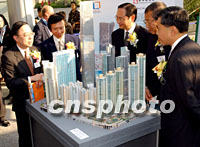 图:香港地铁物业夥同四大房地产商推介西九龙物业 2001年11月21日 19:41 ![]() 香港地铁物业总监何恒光(中),11月21日夥同恒隆集团主席陈启宗(左一)、新鸿基地产副主席郭炳江(左二)、九龙仓集团主席李唯仁(左三)、永泰亚洲富联国际行政总裁郑维新等共同推介正在建设的西九龙面积达1,200万平方尺的超大综合发展项目。中新社记者 任晨鸣 摄 |