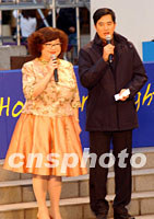 香港著名演艺界人士沈殿霞十二月九日主持“中电全城动感耀灯辉”活动。 中新社传真 任海霞摄