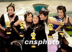 图:国际华裔小姐新鲜出炉 2002年01月28日 16:13 ![]() 二零零二年度国际华裔小姐总决赛二十七日晚在广州举行,温哥华小姐周雪获得冠军,多伦多小姐白颖茵(左二)获得亚军,吉隆坡小姐符愫娱(右二)获得季军。中新社记者 梁永强 摄 |