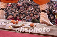图:安徽以少林功夫促销彩票 2002年02月02日 19:38 ![]() 在春节前的中国体育彩票安徽省繁昌县销售现场,来自嵩山少林寺的武僧前来助阵促销。他们表演少林绝活,赢得数千观众喝彩。图为释行僧轻松地从鸡蛋上跳下。中新社图 吴芳 摄