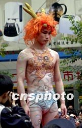 图:模特赤身二月寒风中展示人体彩绘