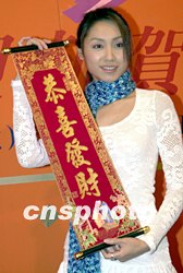 图:郭可盈向观众拜年祝大家「恭喜发财」 2002年02月10日 09:09 ![]() 香港无线电视剧集《法网伊人》剧中众艺员9日特为该剧举行宣传活动,艺员郭可盈向观众拜年祝大家“恭喜发财”。中新社传真 邓庆乐 摄