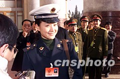 解放军代表、著名歌唱演员宋祖英五日出席在北京人民大会堂举行的中国第九届全国人大第五次会议。中新社记者 毛建军 摄