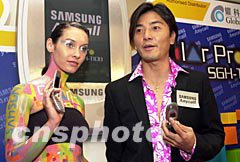 ![]() 歌影视红星郑伊健12日在香港应邀出席三星Anycall SGH-T108彩色显示手机发布会,郑伊健继续出任三星Anycall新手机代言人,并向媒体展示新手机。中新社图 邓庆乐 摄