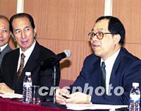 澳门特区政府与何鸿燊签署18年博彩经营合约 2002年03月29日 06:18 ![]() 澳门特区政府与澳门博彩股份有限公司二十八日签署博彩经营批给合同,图为特区政府经济财政司司长谭伯源与澳博公司董事长何鸿燊在签约仪式后共同举行新闻发布会。中新社记者 宗金柱 摄