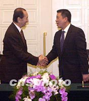 ![]() 澳门特区政府与澳门博彩股份有限公司二十八日签署博彩经营批给合同,图为行政长官何厚铧与澳博公司董事长何鸿燊在签约完成后互相握手。中新社记者 宗金柱 摄