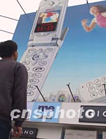 图:王府井街头竖起新型手机广告时间牌 2002年04月21日 17:48 ![]() 近日,在北京王府井的街头立起了一块用手机广告装饰的时间牌,它可以显示时间和温度,给行人带来方便。手机厂商为了抢占手机市场可谓煞费苦心。中新社记者 杜洋 摄