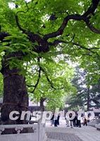 图:游人在潭柘寺娑罗树下"沾仙气" 2002年04月23日 10:49 ![]() 四月北京西郊潭柘寺院中的游人正在观赏已具千年树龄的娑罗树。相传此树种源于印度,释迦牟尼“寂灭”于娑罗双树之间,故佛门将此树视为宝树供养。“娑罗树在返青季节凡人在树下可“沾仙气”的传说,使得这里每年四月间都吸引游人在此驻足祈福。中新社记者 宋吉河 摄
