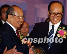 ![]() 拥有一百万潮藉人口、一百多个潮藉社团的香港,4月23日成立了“香港潮属社团总会”, 主席陈伟男向出任荣誉会长的香港长实集团主席李嘉诚颁发证书。中新社记者 任晨鸣 摄