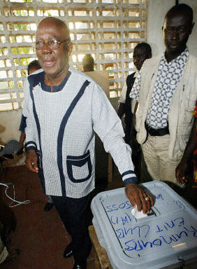 图:5月14日塞拉利昂举行总统选举 2002年05月14日 21:10 5月14日,塞拉利昂举行了内战结束后的首次总统选举,此次共有9个候选人参加总统竞选,参加投票的选民预计将达到230万。中新网图