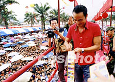图:任达华为珠海福利事业献爱心 2002年05月20日 19:43 ![]() 十九日下午,香港著名影星任达华专程来到珠海市,为该市福利彩票发行中心举办的“六千万元即开型福利彩票发行活动”助兴,为支持珠海市的福利事业,任达华当场拿出一千元购买福利彩票。中新社记者 石头 摄