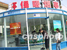 图:新型环保吸烟亭亮相京城 2002年05月21日 19:56 ![]() 二十一日,在北京全国农业展览馆中,一种新型环保吸烟亭引起了人们的注意。该吸烟亭能迅速过滤有害气体,去除空气中的烟味。北京将有计划地在机场、车站、商场等公共场所安装这种环保吸烟亭。中新社记者 章永哲 摄