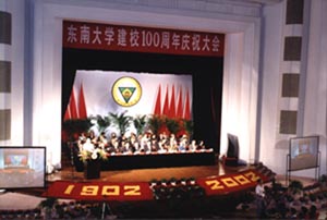 江泽民李鹏李瑞环为东南大学百年华诞题词致贺 2002年06月01日 09:40 ![]() 东南大学建校100周年庆祝大会主会场 5月31日是东南大学建校一百周年的喜庆日子。树木苍翠、碧草茵茵的东大校园早早披上了节日的盛装,四万多名师生与海内外校友在久负盛名的大礼堂以及各分会场隆重集会,共庆母校百年华诞。 江泽民总书记为东南大学校庆的题词是:“严谨求实,团结奋进,把东南大学建设成一流人才和创新成果的培育基地”。李鹏的题词是:“传承百年优良传统,培育更多建国人才”;李瑞环的题词是:“求是笃行,育才报国”。李铁映、许嘉璐、费孝通,原中央大学校长顾毓琇等也为东南大学百年校庆题词。 全国政协副主席钱伟长,全国政协科教文卫体委员会主任刘忠德,江苏省有关领导陈焕友、曹克明,诺贝尔奖获得者丁肇中,国家地震局局长宋瑞祥,教育部副部长周济、韦钰,科技部副部长刘燕华等出席了庆典大会。 国家教育部部长陈至立,中共江苏省委书记回良玉、铁道部部长傅志寰,中国工程院士丁衡高上将,台湾“中央大学”校长刘兆汉专门发来了讲话录像或贺电。 大会由东南大学党委书记胡凌云教授主持。东南大学校长顾冠群院士在庆祝大会上作了题为“秉承百年优良传统,开创世纪新的辉煌”的报告。他说,东南大学肇始于1902年创立的三江师范学堂,此后,历经两江师范学堂、南京高等师范学校、国立东南大学、国立中央大学、南京工学院等重要发展时期,走过了一百年征程。现在的东南大学有10个国家重点学科,13个一级学科博士学位授权点,53个二级学科博士点;10个博士后科研流动站;现学校共有40多个院、系,104个硕士点,52个本科专业,是一所以工为主,工、理、医、文、管多学科协调发展的全国重点大学。学校现有两院院士7位,国家攀登计划认知科学重大项目首席科学家1人,国家杰出青年基金获得者8人,国家“百千万人才工程”培养对象7人,国家“863”计划领域专家委员会和主题专家组成员7人,国家重点基础研究发展规划(973)专家顾问组成员1人,教育部跨世纪人才基金获得者13人,江苏省“333工程”培养对象72人。“长江学者奖励计划”特聘教授岗位16个,现已聘特聘教授14人。百年东大,可谓是我国近现代高等教育发展的缩影。百年东大,为推动中国现代化进程和社会发展发挥了重要作用。校训“止于至善”所寓意的追求尽善,追求完美,追求真理的办学理念,已铭刻在今日东大人的心中。新的百年,我们必须培养大批具有创新精神和实践能力的高级人才,使东大始终成为社会、经济和科技进步与发展的思想库和动力源。到21世纪中叶力争把东南大学建设成为综合性、研究型、国际化的世界一流大学。 最后,教育部副部长周济在庆祝大会上发表讲话,他希望东南大学树立开放式办学理念,通过为社会尤其是为江苏提供全方位高水平的服务,来赢得支持,开拓学校改革与发展的广阔空间。 美国马里兰大学校长牟德教授、重庆大学校长吴中福教授分别代表海内外兄弟大学在会上致辞,飞利浦公司执行副总裁万德坡先生以及教师代表和学生代表等也在大会上讲话或发言。印度尼西亚力宝集团董事长李文正先生也出席了大会。 5月31日,在20世纪伟大的物理学家吴健雄先生诞辰90周年之际,一座旨在彰显其辉煌的科学业绩和高尚的道德风范的纪念馆在其母校东南大学隆重开馆,为沉浸在建校100周年的喜庆气氛中的东南大学增添了又一道亮丽的风景。国家教育部部长陈至立为吴健雄纪念馆开馆发来贺电。出席百年庆典大会的领导和嘉宾参加了开馆仪式。中共江苏省委副书记任彦申、华裔诺贝尔奖获得者丁肇中博士、东南大学校长顾冠群院士、吴健雄先生之子袁纬承先生在仪式上致辞。 吴健雄是世界公认的最杰出的女性物理学家、世界物理学界的传奇人物,被誉为“核子物理女皇”、“中国的居里夫人”。她1912年5月31日出生于江苏太仓浏河,1930年以优异成绩被保送到东南大学前身——国立中央大学数学系,1931年转入物理系。1936赴美深造。1957年她通过实验首次验证了“弱相互作用下宇称不守恒”的理论,从而使李政道、杨振宁荣获了当年的诺贝尔物理学奖。1997年2月16日,吴健雄在纽约家中去世。1999年,为纪念吴健雄伟大的一生及辉煌的科学业绩,使她的科学精神和人格风范能长驻天地,激励后学,中共中央、国务院批准在其母校——东南大学校园内建造吴健雄纪念馆,这也是全球第一个华人科学家纪念馆。 东南大学编辑出版的《吴健雄:献身物理科学的一生》纪念画册首发式也与吴健雄纪念馆开馆仪式同时举行。该画册由全国人大副委员长周光召院士题写书名,李政道、杨振宁、丁肇中等六位诺贝尔奖获得者分别为画册题词。(郑立琪、周 虹)