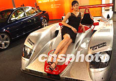 ![]() 一名黑衣模特躺在身经百战的银色赛车上,使北京六月的国际汽车展富于美女名车的刚柔之情。贾国荣 摄