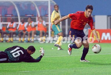 图:南非VS西班牙 劳尔进球瞬间 2002年06月12日 19:59 ![]() 韩日世界杯B组南非队与西班牙队的比赛将在韩国大田世界杯体育场进行。上半时比赛结束,西班牙2:1南非。图为西班牙队7号劳尔进球瞬间。