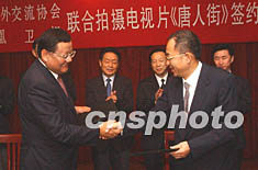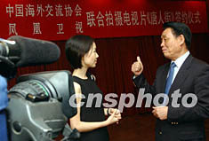 ![]() 中国海外交流协会和香港凤凰卫视二十一日在北京签署联合拍摄电视片《唐人街》的协议,中国海外交流协会常务副会长郭东坡(右)在签约仪式上接受凤凰卫视主持人陈鲁豫采访时称,该片必将在海外华侨、华人中间引起广泛的影响和关注。作者:武仲林