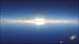 图文:美国天文学家绘制出精美银河系景观图 2002年07月02日 10:22 ![]() 银河系景观图 中新网北京7月2日消息:美国马萨诸塞州立大学的几位天文学家花了五年时间,利用分别位于美国和智利的两台天文望远镜拍摄到的红外图像,组成了从银河系外部观看到的这一星系的景观图。 天文学家表示,这一景观图类似宇航员飞行到银河系之外后观看到的银河系的结构和景况。上述两台望远镜将天空划分成大约5万条天带,然后利用不同的红外波对5亿多颗星体进行了观测。到目前为止,这两台望远镜已经为科学家提供了大量有关组成银河系的星体结构和形状的新信息。 研究小组的负责人马丁·维恩伯格教授表示,上述景观图还只是由他们搜集到的一小部分图像组成的,他说:“通过对某颗星体的红外颜色比率进行分析我们可以确定星体的整体颜色,然后将这一颜色汇集到银河系景观图当中,随着研究的深入,这一景观图将变得更加丰富,从而有助于天文学界人士从中获得更多有用的信息。”