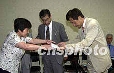 ![]() 花冈事件受难者联谊会2日在日本国会发表《致日本内阁函》,要求日本政府正视强掳、奴役中国战俘劳工的历史,承担政治、法律、道义上的责任,公开、正式地向中国人民谢罪。图为受难者家属代表王红向日本国会议员提交函件。中新社记者 陶光雄 摄