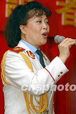 ![]() 由150人组成的中国人民解放军军乐团强大阵容,7月6日晚将在香港红磡体育馆演出。7月4日下午,中国著名女高音歌唱家韩芝萍大校为来宾演唱演出晚会歌曲。任晨鸣 摄