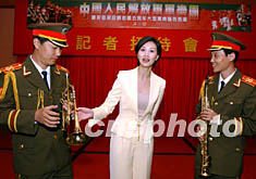 ![]() 香港亚视当红主持人朱慧珊,7月4日出席中国人民解放军军乐团记者会,她将主持7月6日晚在香港红磡体育馆举行的中国人民解放军军乐团演出晚会。任晨鸣 摄