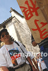 图:两岸文化界人士在古徽州寻根溯源 2002年07月10日 19:17 ![]() 参加“情系黄山——两岸文化联谊行”活动的两岸文化界人士,十日参观世界文化遗产——皖南西递村,探寻古徽州文化风貌。图为来自澳门的霍志钊先生走进村中的百姓宗祠,寻根溯源。中新社记者 武仲林 摄
