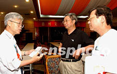 图:两岸文化界人士纵论徽州文化 2002年07月11日 10:00 ![]() 参加“情系黄山——两岸文化联谊行”活动的两岸文化界人士十日晚与当地徽州文化专家进行座谈,纵论徽文化的研究与发展。图为台湾中国文化大学王士仪教授(左)、澳门旅游娱乐有限公司霍志钊先生(右)与当地徽文化专家汪柏树先生会后热烈讨论。作者:武仲林