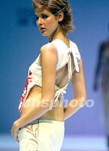 图:香港时装节展示大露背低后腰性感潮流女装 2002年07月12日 15:01 ![]() 香港时装节前日展示各款新潮流时装,香港著名设计师郑兆良设计的一款白色绣花女装,体现了当今刻意追求大露背低后腰性感女装的时尚。任晨鸣 摄
