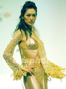 ![]() 香港知名时装设计师马伟明设计的一款从侧面展现女子美丽身段的上装,前日在香港时装节晚会上展示。任晨鸣 摄
