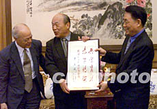 图:郭东坡会见旅日华侨联合总会代表团 2002年07月24日 08:24 ![]() 国务院侨办主任郭东坡二十三日在北京钓鱼台会见由殷秋雄(左一)、金(羽加军)(左二)率领的旅日华侨联合总会代表团。该团自1999年以来共捐款210万元人民币用于建立希望小学等项目。作者:郑萍萍