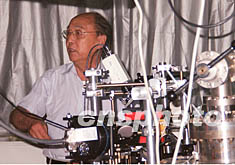 图:中国科学家完成“玻色—爱因斯坦凝聚”实验 2002年07月24日 10:41 ![]() 继美、德等国科学家之后,中国科学家今年也成功实现了爱因斯坦七十年前预言的新物态——“玻色—爱因斯坦凝聚”实验。图为领导这一项目的中国科学院院士王育竹日前在上海实验室介绍该项实验。中新社记者 孙自法 摄