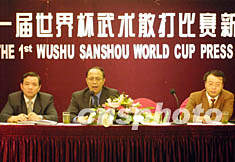 图:首届世界杯武术散打赛将于25日在上海开幕 2002年07月24日 18:53 ![]() 首届世界杯武术散打赛将于二十五日在上海拉开战幕。本次比赛吸引了来自中国、美国、巴西、韩国等十五个国家和地区的四十四名“武林高手”前来参赛。图为国际武术联合会秘书长严建昌(中)二十四日在新闻发布会上介绍比赛情况。作者:汤彦俊