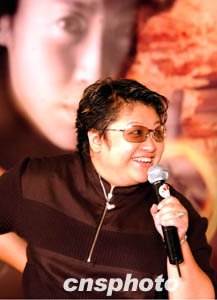 图:韩红首次藏语演唱影片《天脉传奇》主题歌 2002年07月26日 09:42 ![]() 由奥斯卡金像奖得主鲍德熹导演、动作女影星杨紫琼小姐领衔主演的影片《天脉传奇》,日前在北京嘉里中心饭店举行“亚洲新闻发布会”,该片历经青岛、西藏、敦煌和北京,耗资一亿六千万港币拍摄。图为著名歌手韩红首次用藏语为该片演唱主题歌。中新社记者 钱兴强 摄