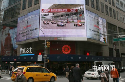在号称世界金融中心的纽约,时代广场上路透社的巨幅电子屏昼夜闪烁,这个以快速报道世界各大洲重大事件闻名的新闻窗口上,吸引着世界商圈的目光。AGF的赛车雪邦站的信息被持续播放了一整天。