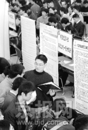 中新网11月15日电 据北京晚报报道,尽管面向应届大学毕业生的校园招聘活动尚未全面开始,但是各知名企业上周已经开始在校园举办宣讲会。据悉,2006年,全国高校毕业生人数达413万人,比去年增加22%。2007年,这个数字仍将持续上升。其中,2007年,北京地区高校应届毕业生将达到20万,为近年来人数较多的一年。因此,面对庞大的就业群体和人才群体,国内企业争相寻找适合各自企业的人才。