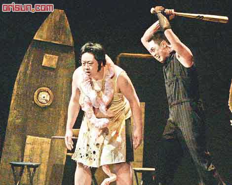 中新网7月15日电 据香港《东方日报》报道,由陈奕迅(Eason)、彭敬慈及组合EO2成员Otto和Osman等合演的舞台剧《大煞风景》14日晚正式公映,该剧演员经常讲粗口及吸烟,剧中亦有暴力场面,当中有一幕是饰演彭敬慈爸爸的演员,要求儿子用棍打死自己,意识颇为不良。虽然制作公司于售票时已指明观众要年满六岁方可进场,但仍有 坏年轻一辈之嫌。
