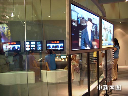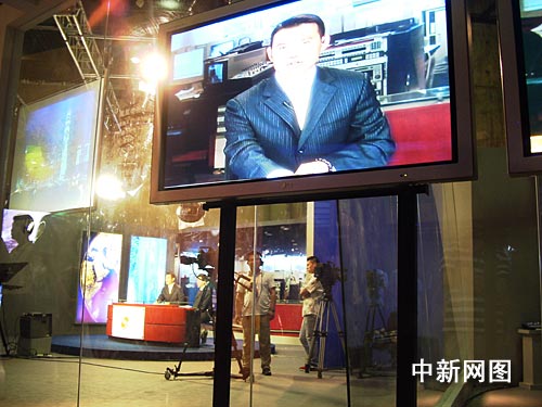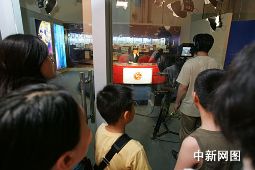 加强与观众互动,让更多观众了解电视制作过程,体验电视直播的现场感是凤凰此次展览的一大特点,也是一次用心的安排。为缩短观众与电视的距离感,这个演播室模型是将凤凰资讯台演播室四分之一的工作间按1:1比例原貌再现。在非新闻播报时段,这里向前来观展的游客完全开放,观众可以走上主播台,亲身体验凤凰主播的感觉,即便是在新闻直播时段,它与观众的距离也只是一层透明的玻璃。玻璃墙外,观众可以清晰地看到忙碌的工作人员、摄像师、导播等各个电视工种直播前的准备工作。一个七岁左右的小女孩,手指着玻璃门内正在播报的胡一虎,又看了看身旁实时播出的新闻画面,疑惑地问爸爸,这是真的吗?引来大家一片笑声。