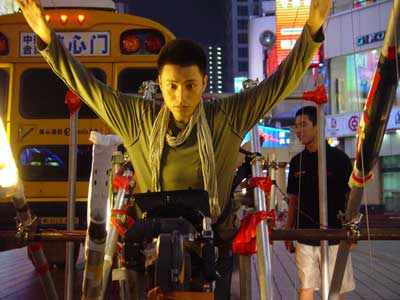 如何让第一次接触特技的陈坤顺利完成动作,特技指导罗礼贤煞费苦心,先是发明了专门放置摄像机的自拍钢铁“飞行架”(陈坤戏称为“摩天轮”),又跟猛龙特技队员们一遍遍演练起重机的摇臂,发明了晃动摇臂特技拍摄法,让身上绑着威亚的陈坤被起重机摇臂带向30米的天空,空中连翻6周,但他因落地不稳意外扭伤了脚,接连拍摄了几条,由于旋转速度过快,被消耗掉不少体力的陈坤一落地就吐了。经过几个镜头的拍摄,陈坤渐入佳境,后来索性冒险成瘾,主动向导演李少红申请:“再来一条。”