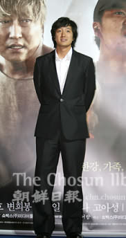 韩国影片《怪物》的试映会于7月4日下午在首尔三成洞MEGABOX电影院举行。在试映会结束后召开的记者会上,主要演员(左起为朴海日、裴斗娜、边熙峰、宋康昊)正笑着接受记者拍照。