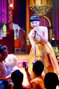 据记者了解,范冰冰此次演唱了5首歌便轻松进账近30万。但在前晚的表演中,除了与现场观众情歌对唱的一首《我悄悄的蒙上你的眼睛》是货真价实的现场演唱外,其余的四首歌都是假唱,并且正是现场对唱的这首情歌让范美女的假唱彻底露了馅儿。