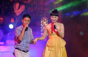 在进行到中场互动环节时,掏了大价钱的主办方突然安排了一个情歌对唱环节。好脾气的范冰冰没有拒绝,还大方地邀请一位男观众合唱一曲《我悄悄的蒙上你的眼睛》。在乐队的现场伴奏下,范冰冰一开口不仅把和她对唱的男士吓了一跳,也把包括记者在内的在场观众全都吓了一跳。和前两首让人惊为天籁的美妙嗓音相比,虽然范美女的声音听上去还不算太失真,但唱到高音部分的她明显中气不足她开始扯着嗓子吼,结果唱破了音。